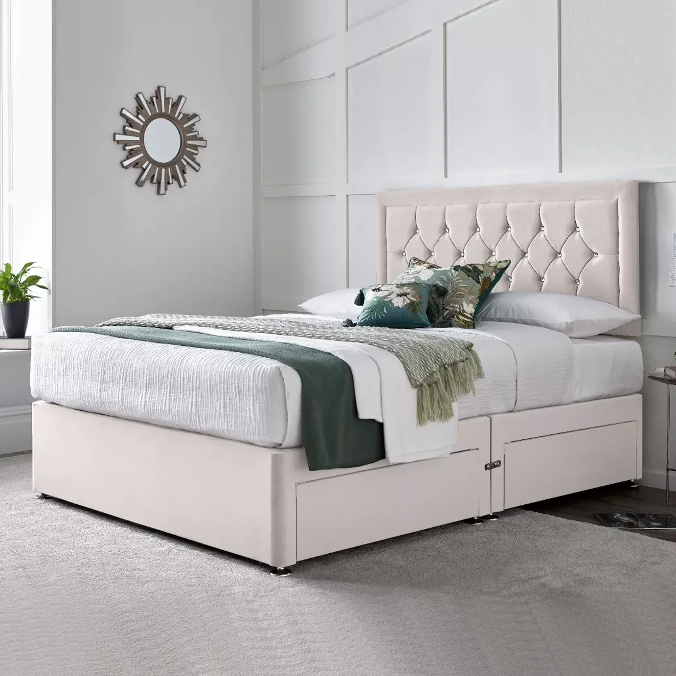 The included headboard offers a sleek and modern design, crafted with soft-touch upholstery for a refined finish. Its padded surface provides added comfort and support, making it ideal for sitting upright while reading or relaxing. The headboard securely fits onto the divan base and is available in a range of stylish colors to complement your bedroom décor.